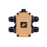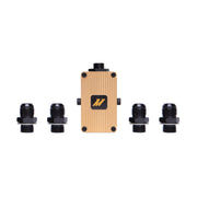 Looking for ideal fluid temperature regulation for your next project? Mishimoto has the answer with our innovative, ingenious in-line oil thermostat. This sleek unit features a perfect blend of both form and function, and is precision-engineered to properly regulate engine oil, transmission fluid, or any other driveline fluid. The Mishimoto In-Line Oil Thermostat is CNC-machined from a single piece of billet 6061 aluminum. This component is ideal for projects where space or clearance places a constraint on using a standard oil sandwich plate. The included thermostat regulates temperatures at 185 degrees Fahrenheit, which is easily interchanged with our 160 degree and 200 degree thermostat units to accommodate to any project. This in-line thermostat includes four -10AN fittings with dowty seals for leak-free line connections. Additionally, this thermostat includes a CNC-machined heat-sink which provides an enhancement in style and helps to reduce fluid temperatures. This also includes a universal mounting bracket and the Mishimoto Lifetime Warranty, ensuring superior product quality and craftsmanship.