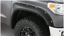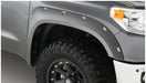 With their recessed stainless steel bolts and massive presence, Pocket Style(R) Fender Flares are a Bushwacker original and an off-road icon. They're custom-designed for your Toyota Tundra to complement oversized tires and high-clearance lift kits. You can mount them right out of the box, with their tough, OEM-style matte black finish — they're UV protected so they wont chalk. Or, paint them to match or accent the body color, for a factory-custom look . Pocket Style(R) Fender Flares are made in the USA from our thick, warp-resistant Dura-Flex(R) 2000 material, tailor-made for added durability and flexibility on the trail. Despite their hard-core bolt-on styling, Pocket Style(R) Fender Flares install easily, with no drilling required. When you need maximum tire coverage with minimum time and effort, its in the pocket. Pocket Style(R) Fender Flares from Bushwacker.